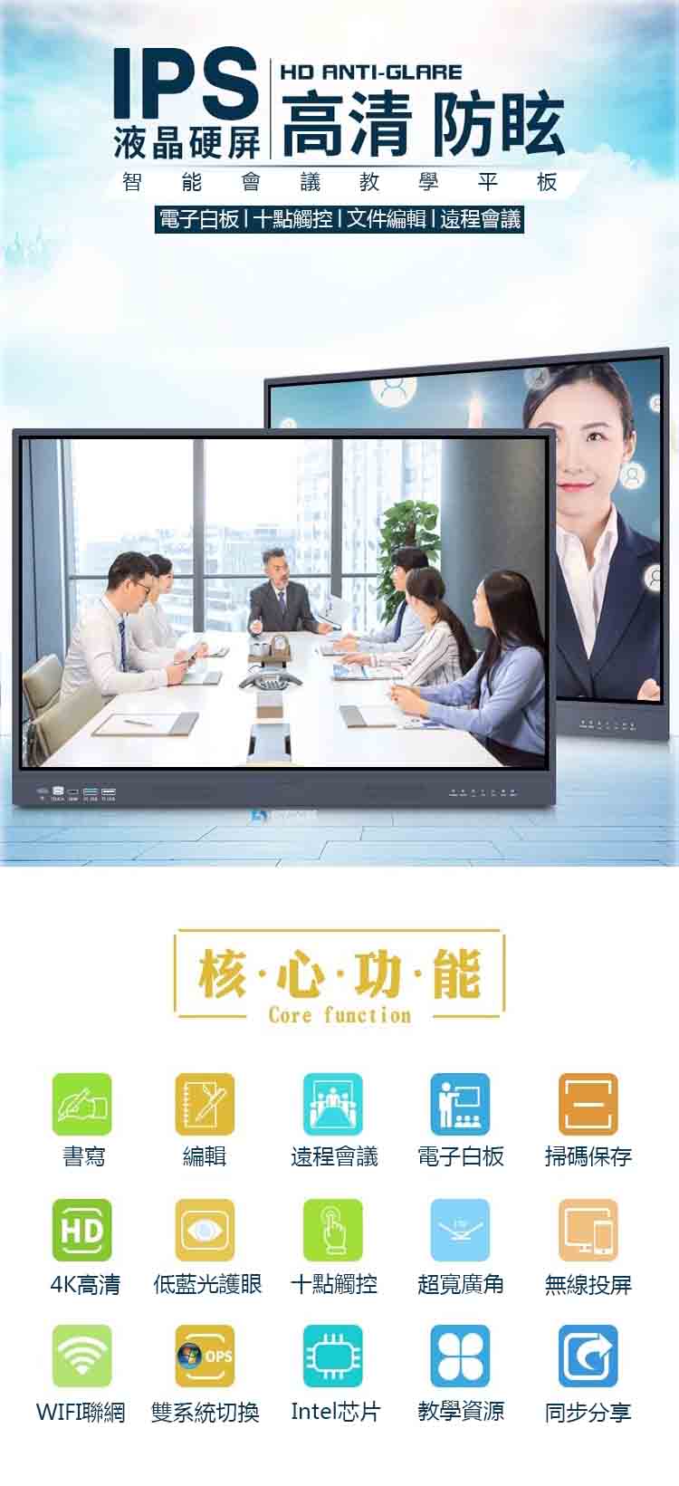網絡支持:智能多媒體教學一體機可以與互聯網連接,支持在線教學、在線學習和在線交流,可以為學生提供更加全面、靈活、便捷的學習方式。