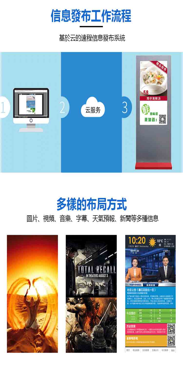 遠程管理:支持遠程控製和管理,可以通過網絡對廣告屏進行遠程更新、定時播放等操作,提高管理效率。